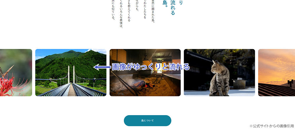 画像をカルーセル形式で表示。複数の画像が流れるように動きます。