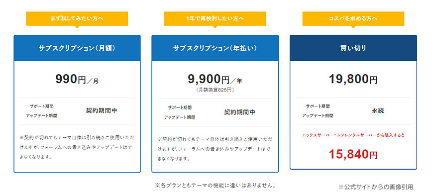 Xwriteは「テーマのみ購入」と「サーバーとセットで購入」の2タイプあります。