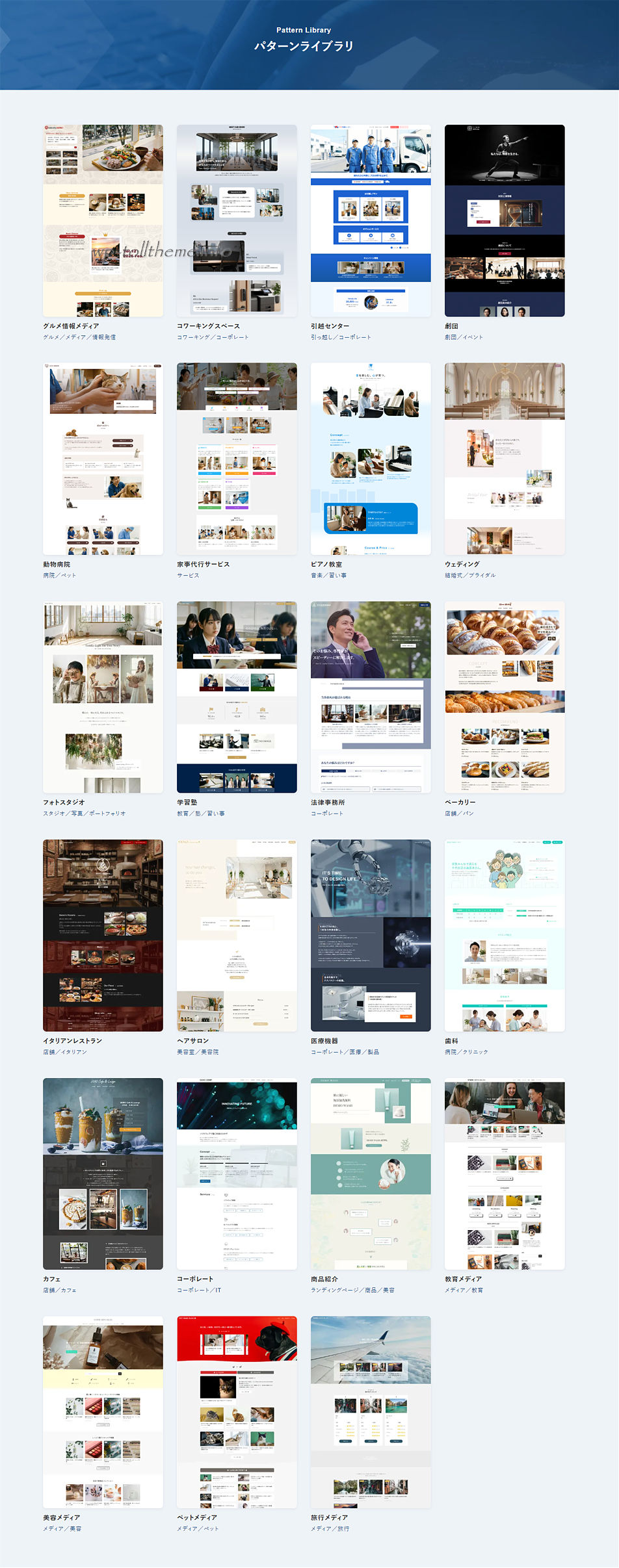 またデモサイト用のパターンも公開しており、自サイトにコピー&ペーストすることでデモサイトと同じレイアウトで再現させることもできます。